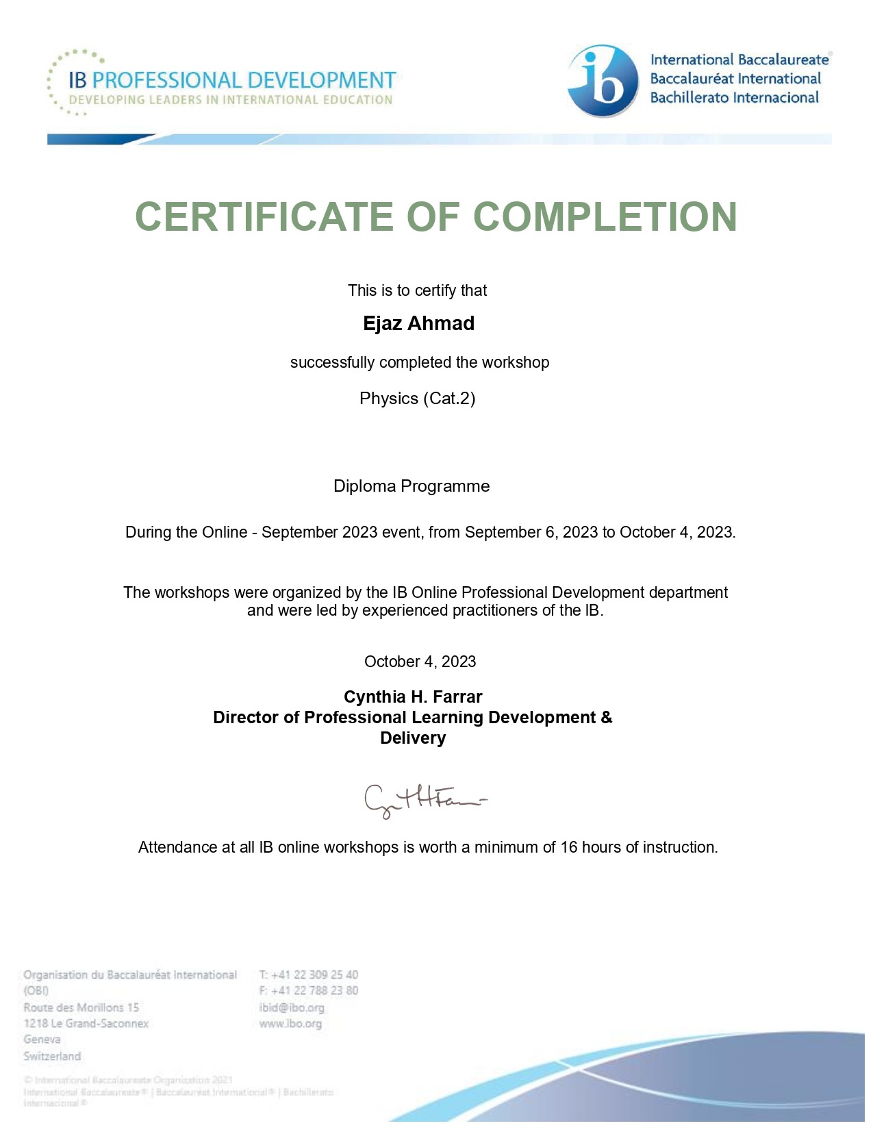 • Progress in school and readiness for IB exams.